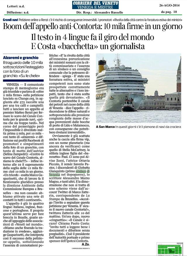 Ne abbiamo raccolte 30.000, fra quelle pervenute online (via posta elettronica e sulla piattaforma change.org) e quelle raccolte campo per campo, calle per calle e negozio per negozio a Venezia, e a migliaia nelle giornate del 6 e 7 settembre, che passeranno nella storia di questa città unica al mondo. Sappiamo che è solo l’inizio di una lunga battaglia, per fermare lo scavo del Contorta, ma questo risultato merita di essere celebrato, anche per rendere omaggio alle decine di volontari che hanno risposto all’appello, in uno slancio di generosità che ha commosso Venezia e.. stupito il mondo.