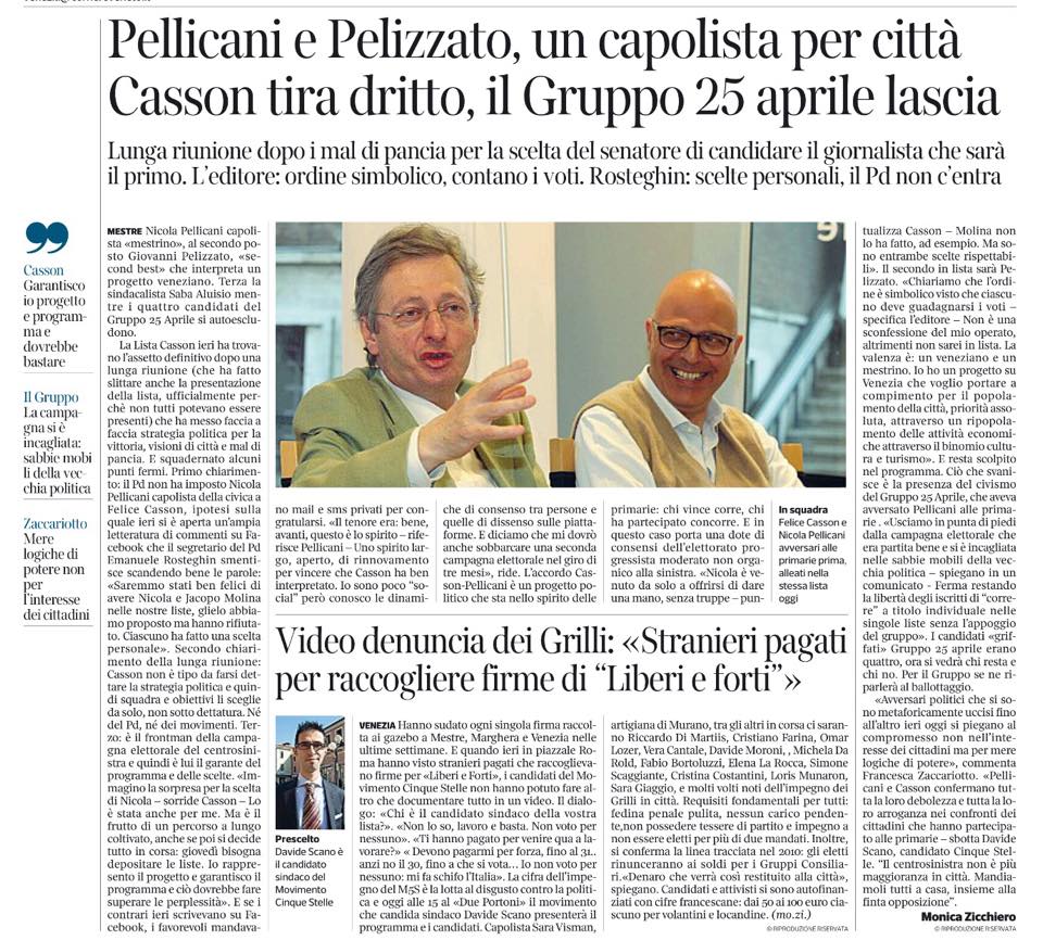 Pellicani capolista nella lista Casson, al posto di Pelizzato?
