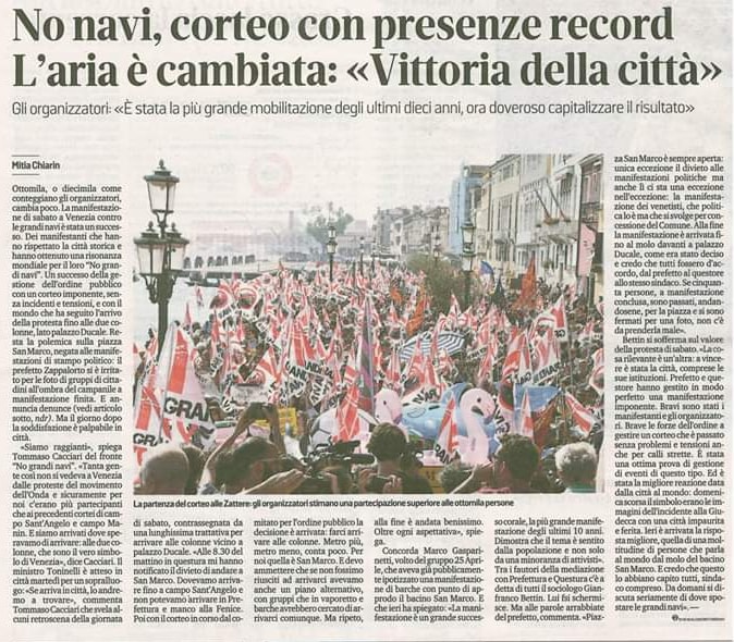 Ora, dopo il gravissimo incidente e mancato disastro navale della Marittima e il successivo scampato secondo disastro del 7 luglio, le parole del Primo cittadino, che si erge improvvisamente a paladino della difesa di San Marco e a primo sostenitore della necessità di estromettere le navi dal Bacino, appaiono certamente benvenute ma quanto mai sorprendenti e contraddittorie rispetto alla guerra contro il decreto MIBAC dichiarata dal suo fedele assessore.