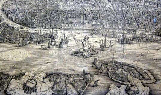 Il Bacino di San Marco, forse già dal 9° secolo e fino a tutto il Settecento, fu il porto della Serenissima ospitando imbarcazioni locali e straniere di ogni genere. Le due colonne, come noto, seguendo un modello bizantino, simboleggiano l’ingresso alla città perché dal porto appunto si entrava nelle città di mare.