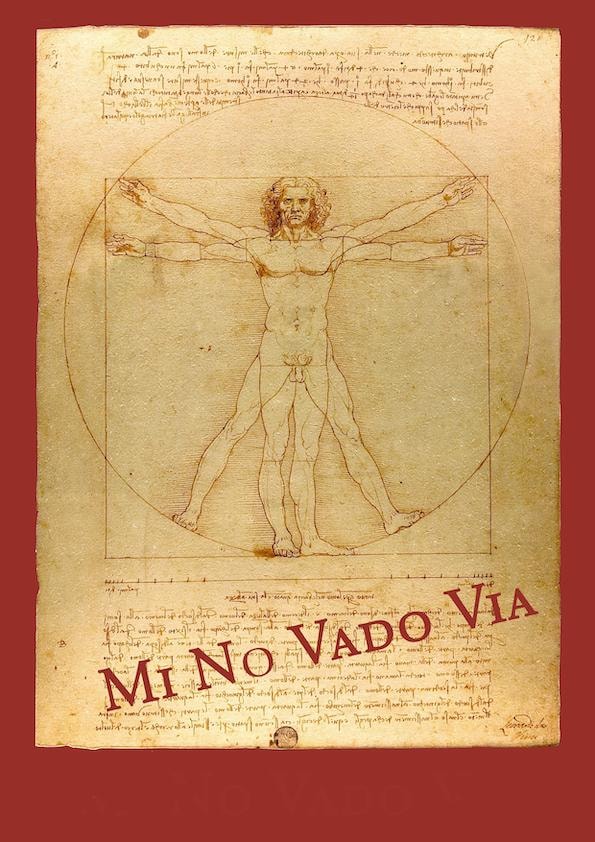 Il #MiNoVadoVia del poster non si riferisce tanto o soltanto al celeberrimo disegno quanto ai valori universali che rappresenta, e che dalle città del Rinascimento italiano si erano diffusi in tutta Europa , mentre da qualche anno sono sempre più calpestati in una città devastata dalla mercificazione di ogni spazio pubblico e privato (vale per Venezia, e in parte anche per Firenze).