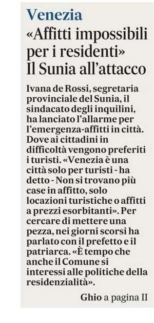 OCIO: di recente creazione, questo “Osservatorio Civico e Indipendente sulla casa e sulla residenza” è opera di un piccolo ma agguerrito collettivo con cui lavoriamo anche noi (li avete già visti all’opera in Bragora, e li rivedrete all’incontro pubblico del 20 settembre) che analizza e studia, dati alla mano, il problema della residenzialità a Venezia. La loro pagina internet è: https://ocio-venezia.it/