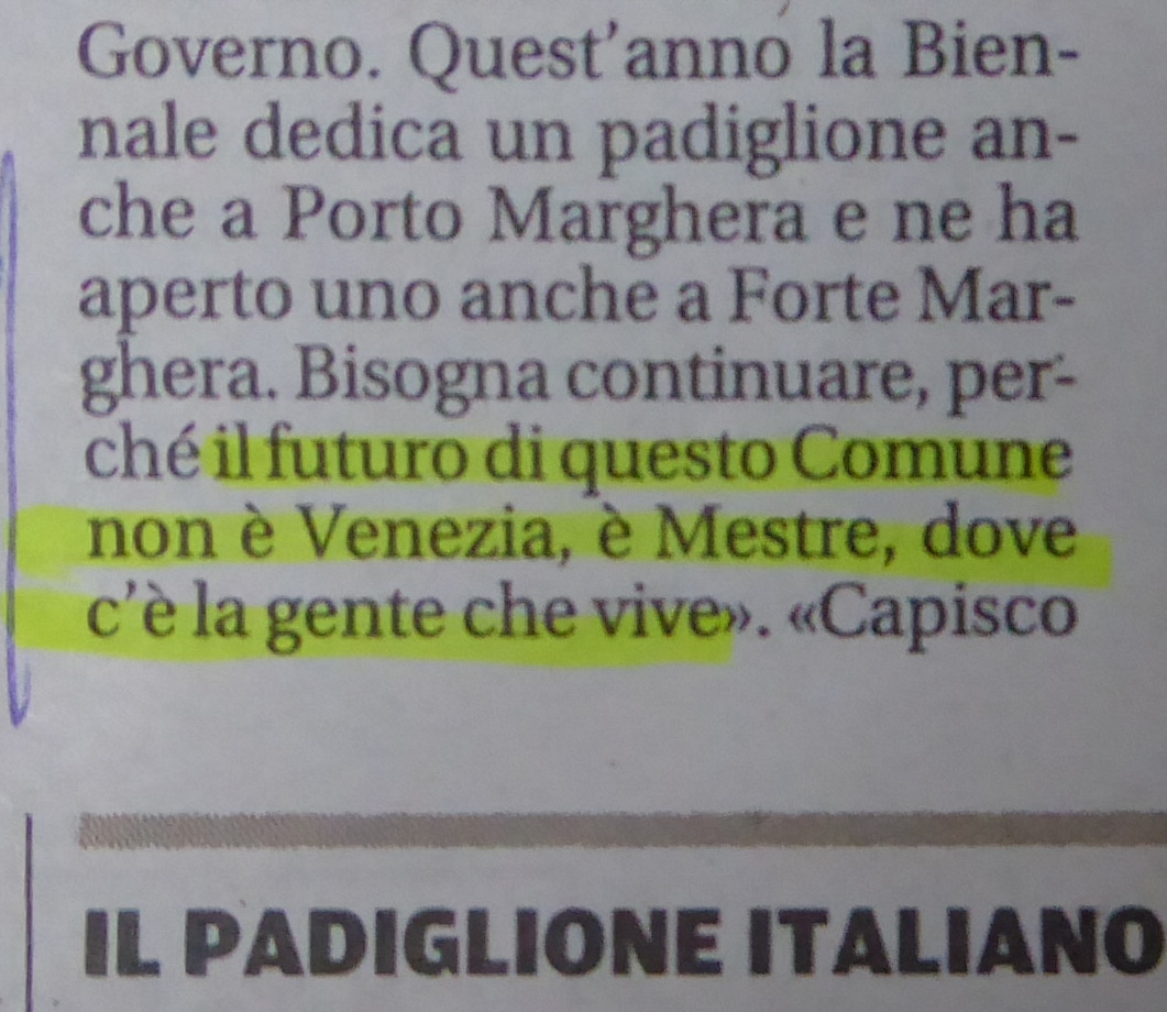 Piazzale Roma, folla di assessori in carica e segretari al seguito, probabilmente ignari dell’esistenza di mezzi pubblici (ACTV) e per nulla disposti a sporcarsi le scarpe per raggiungere l’unica Piazza con questo nome a Venezia, o forse incapaci di raggiungerla a piedi. Al quadretto bucolico mancava solo un “How can I reach Piazza san Marco”?