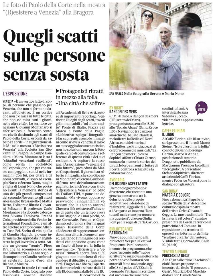 Nuova Venezia 11 dicembre, articolo Roberta de Rossi