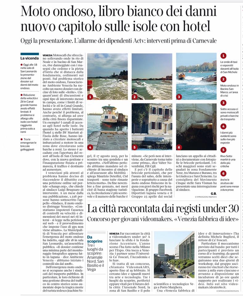 Comunicato stampa: il gruppo25aprile CONFERMA le anticipazioni riportate dal Corriere in edicola oggi (prima foto) e informa la cittadinanza di avere protocollato una DIFFIDA indirizzata al sindaco Luigi Brugnaro in relazione all’inerzia dimostrata sul problema del traffico acqueo.